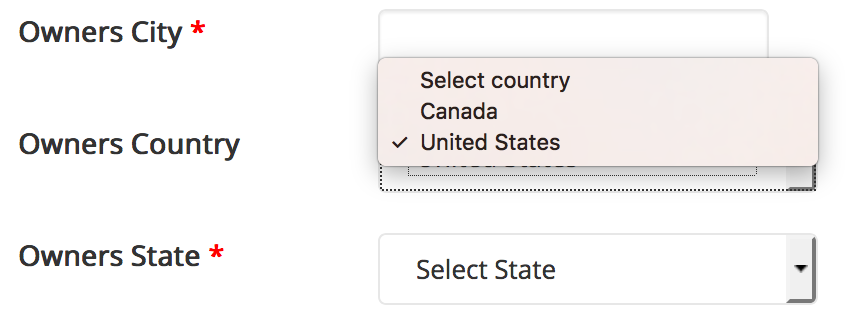 I have tried 3 different web browsers and the States field does not auto populate. The only option is "Select State".