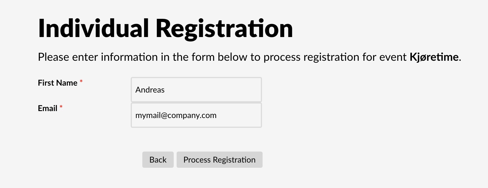 I'm assuming that you only allow registered users to register for events and that you're filling these fields from their user data automatically.
