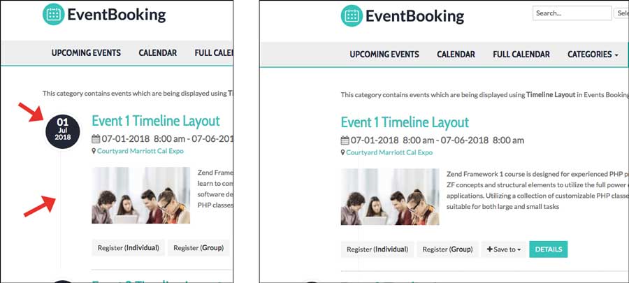 The Timeline layout look great on desktops but a little to squished when viewing on mobile devices as the Circled date and vertical line take up about 1/3 of the screen space on a phone, for example.