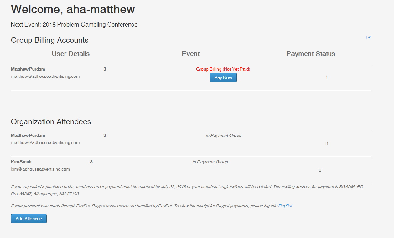 Replied by Matthew Purdom on topic Group and Individual Pay Now Buttons in Account Info page