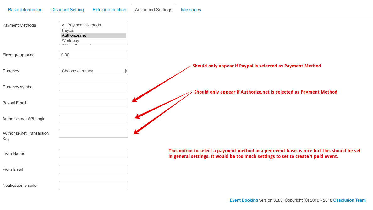 Great. Better don't select payment methods for each event unless it's really needed. The reason is because if you select it for each event, then later, decide to use other payment methods, you will have to edit all existing events, select the new published payment method.