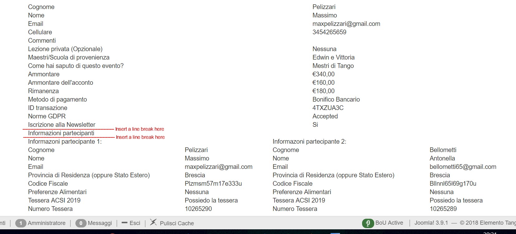 attached to this 3ad you can see the screenshot of the typical email confirmation that the group's main contact receives, when you have a group registration.
