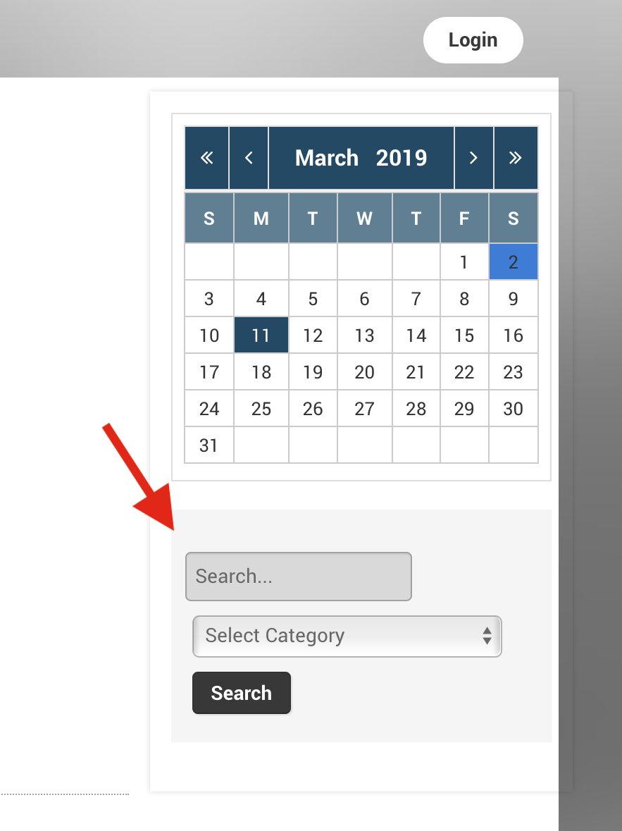 I have placed the Search Events in a sidebar. I have 3 questions: