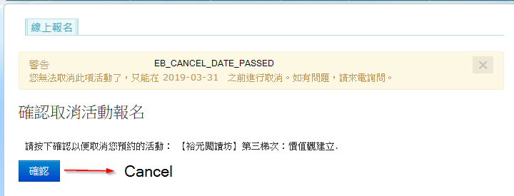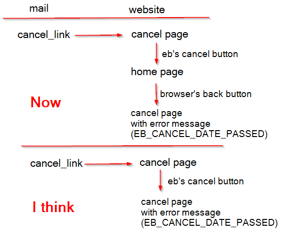 But, the message(EB_CANCEL_DATE_PASSED) should show after I press the cancel button. Not direct to website homepage~