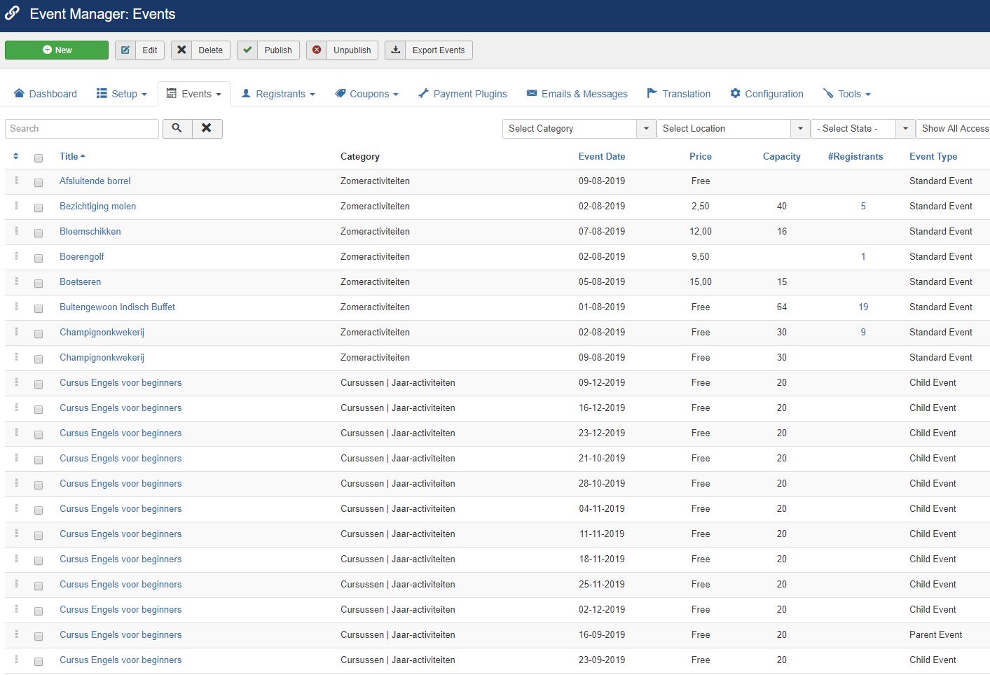 Now when "Show children events date under parent events config option" is set to Yes I find all the child events displayed in the frontend, end that's not what I want. So that should be set to No. See nas6641.myqnapcloud.com:8081/VvSB/senior...ngels-voor-beginners