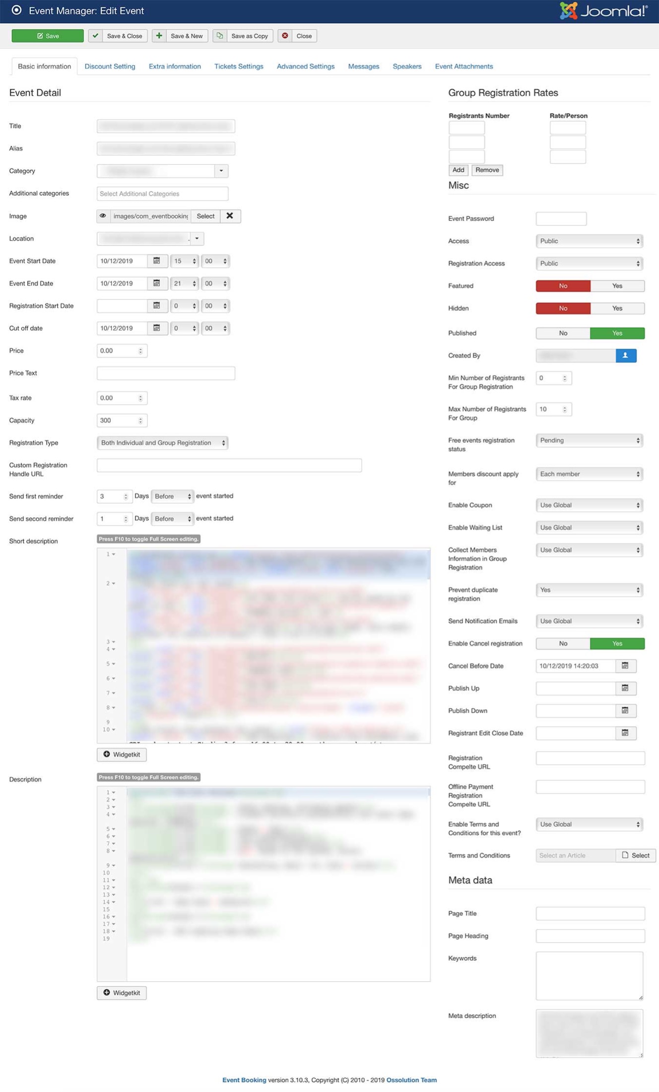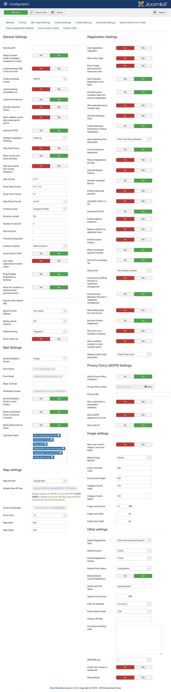 I'm working on a site with J! 3.9.10 under PHP 7.2, where a previous dev had installed EB 3.10.3 (last he could be reached, which is a while ago, he said his EB update license had expired). Events posted on the site are fairly simple, free, and without user account registration, so I didn't foresee too much trouble, also as I've been working with EB before... older version, but anyway.