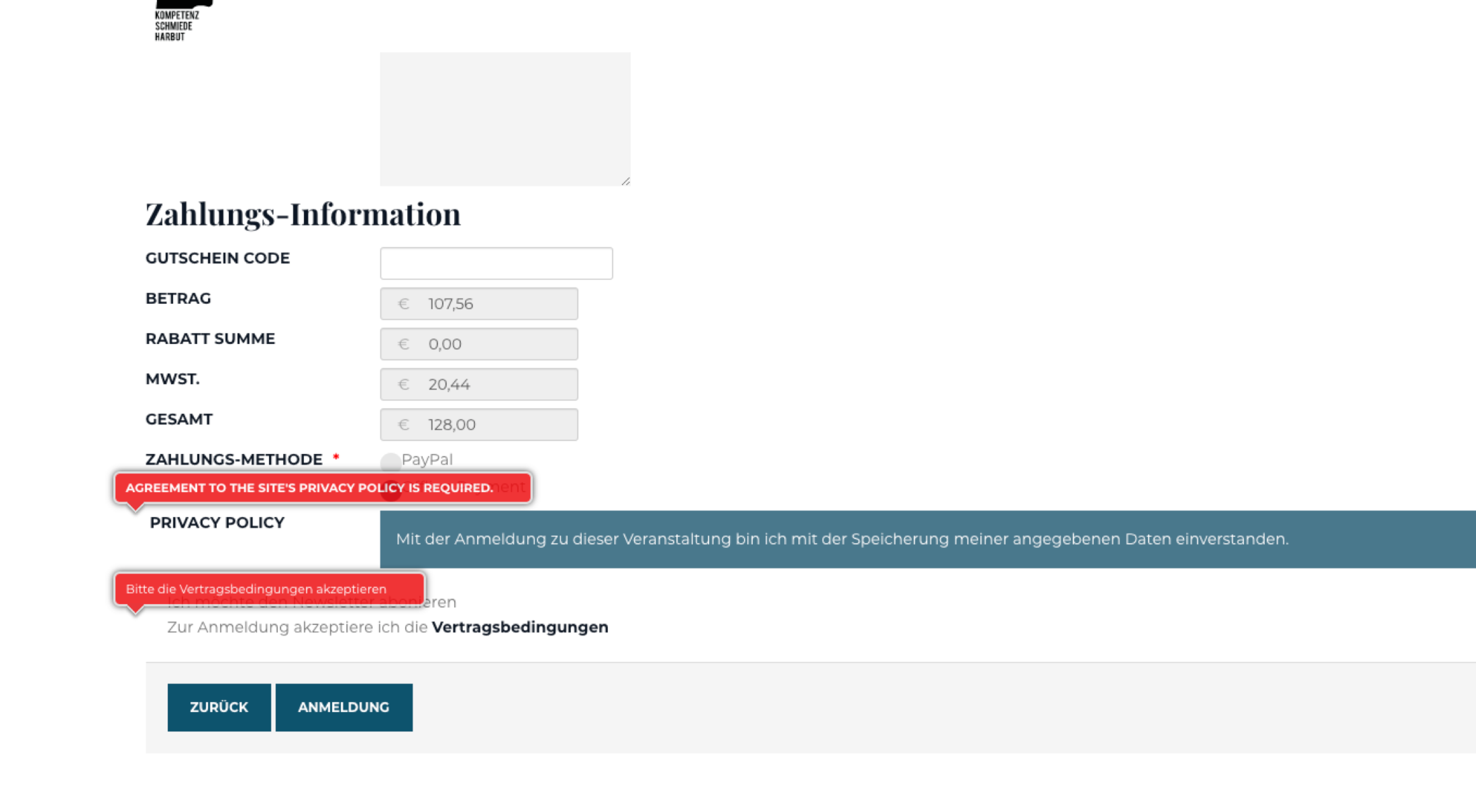 Rendering issue with no checkbox for agreement to store data was created by Carsten Bock
