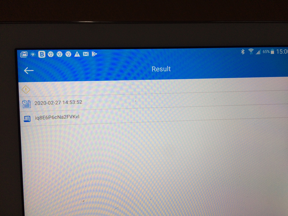 -> Only a !, Date and Time and a 26 figures long number shown on the App (screenshot)