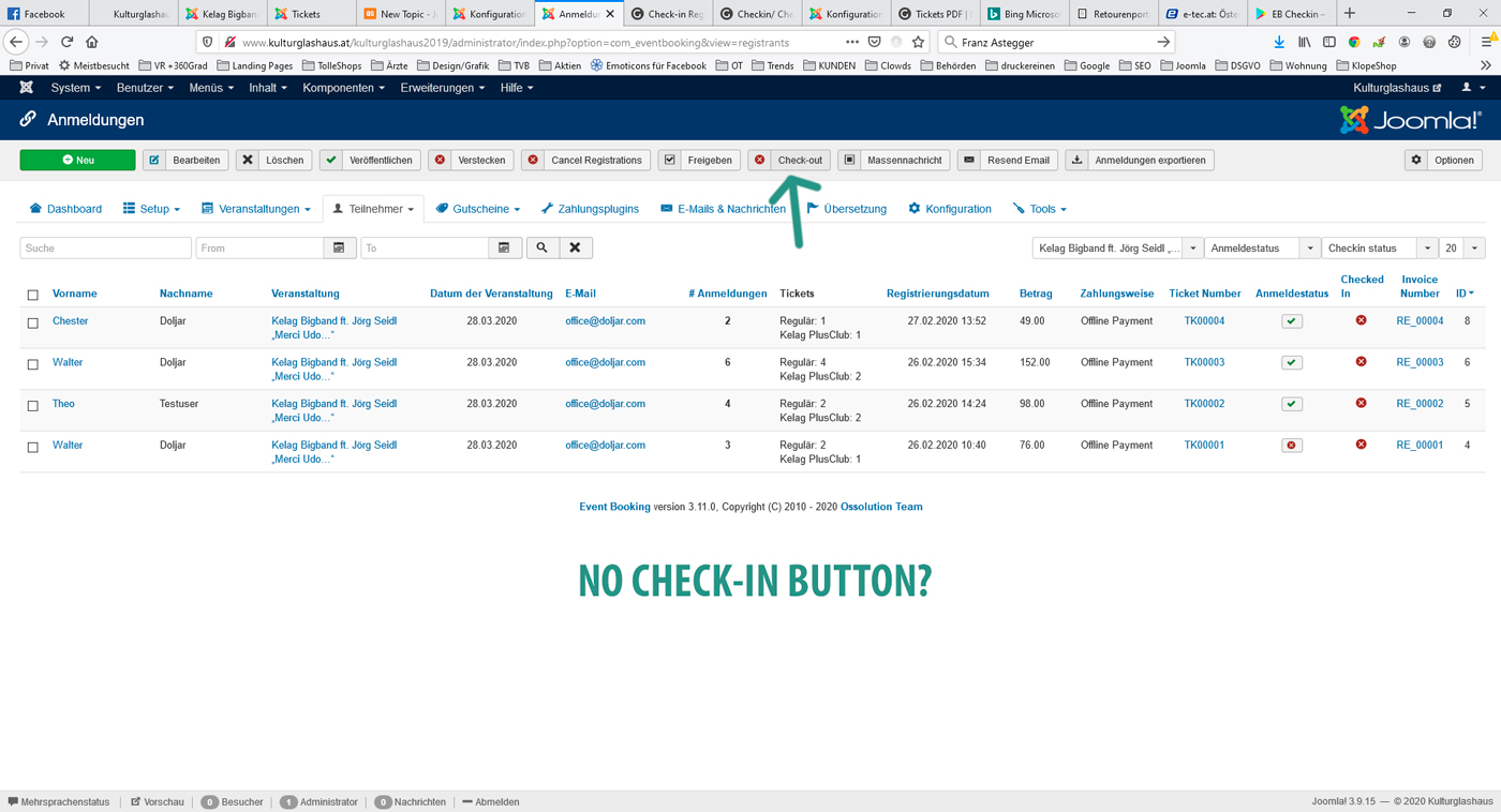Maybe there is something wrong with my settings on the Component because there is the only the CHECKOUT-button in the toolbar but no CHECKIN-button visible on the Registrants Management screen. (screenshot)