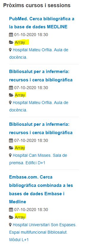 I have installed the component in another web, creating events, categories and other things and I have seen that the upcoming events module does not appear the category, there is only the word "array" and I have looked at the configuration of the other page that I have and in both it has the same configuration and I do not understand why the word "array" appears and not the category.