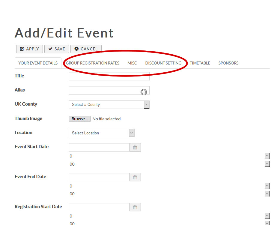 Removing tabs from "add new event" page.