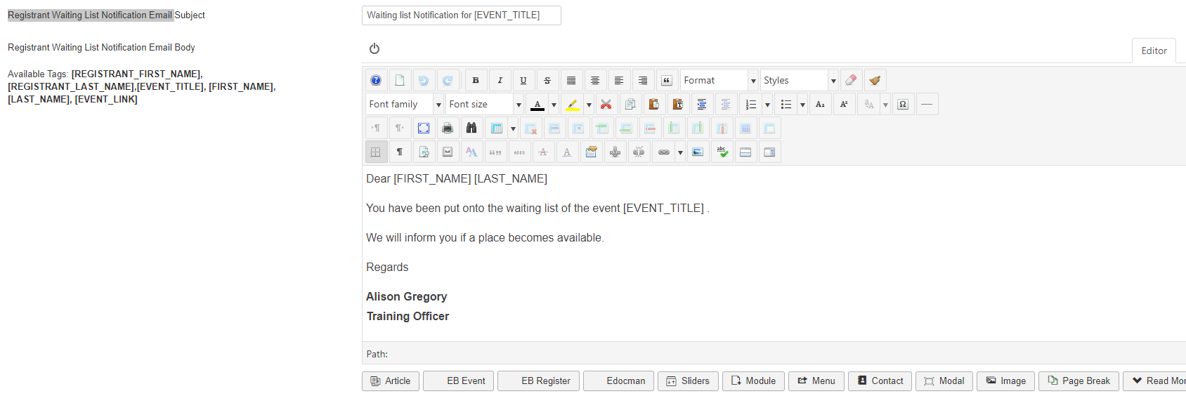 Registrant Waiting List Notification Email - is not being sent but it is set up
