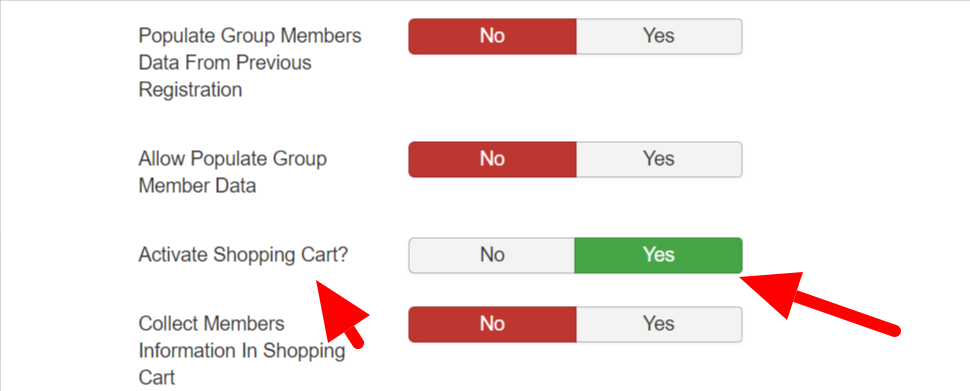 Is it possible that the Shopping Cart plugin isn't installed? I can't find anything in on the configuration page in the Events Booking Component. And on the plugin page either ...