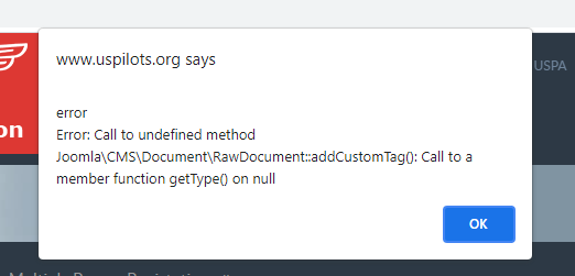 Usually, this causes by something on your site which calls addCustomTag method which is not supported in JDocumentRaw (in case Ajax request is used)