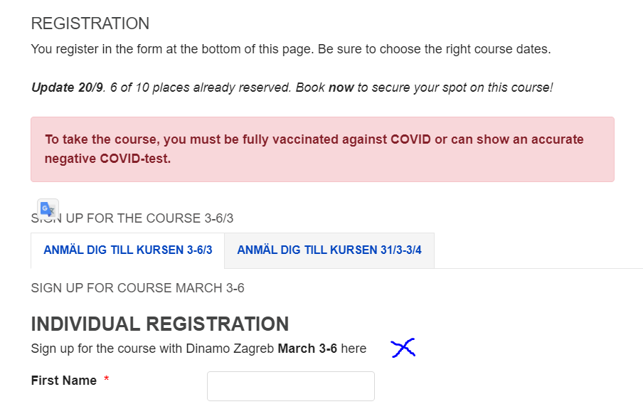 I built a registration page in PageBuilder. At the bottom of the page I have included a module with the {ebregister}. Since there are two different dates for the course there are two tabs. Each tab is opening differnet modules with {ebregister X or y}.