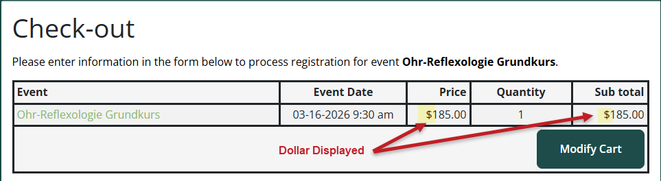 Dollar displayed at Checkout: