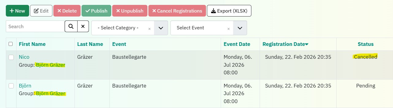 Replied by Bjoern Graezer on topic Email Notification – Registration Cancellation