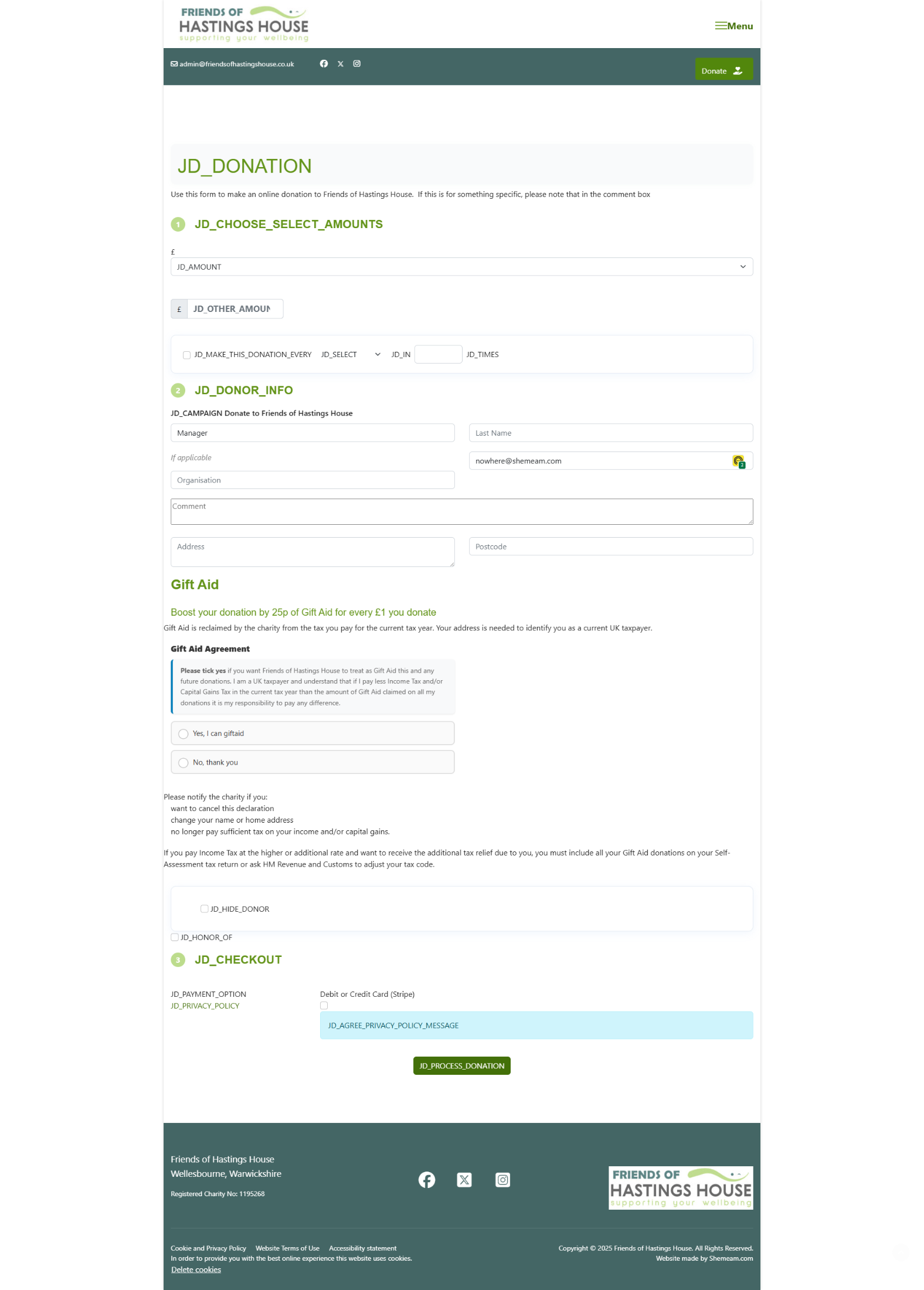 In notice that some of the translation 'key' are showing rather than the actual translation text on the frontend. See friendsofhastingshouse.co.uk/donate