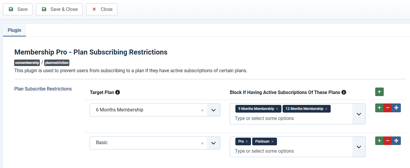 1. Membership Pro - Plan Subscribing Restrictions plugin