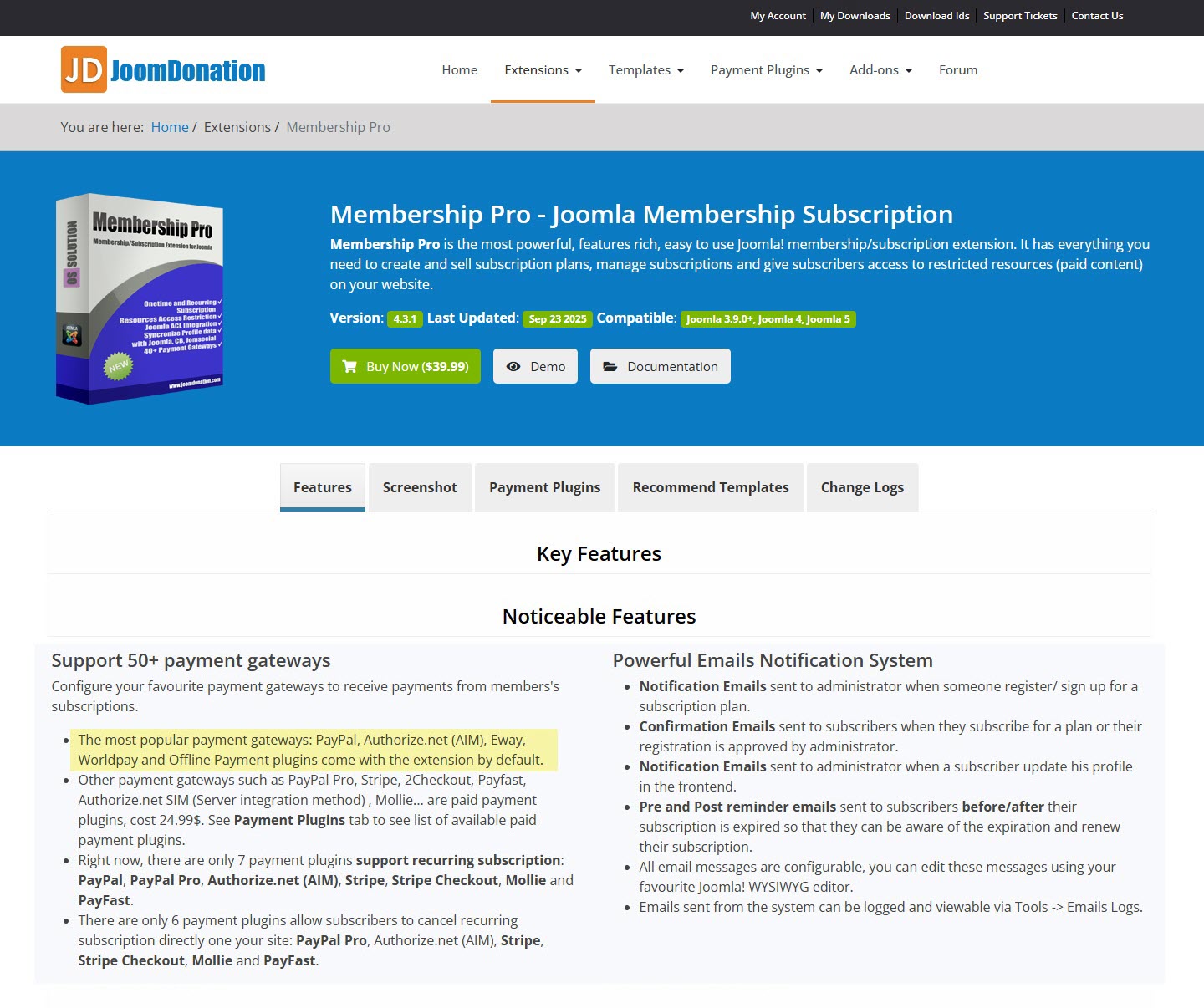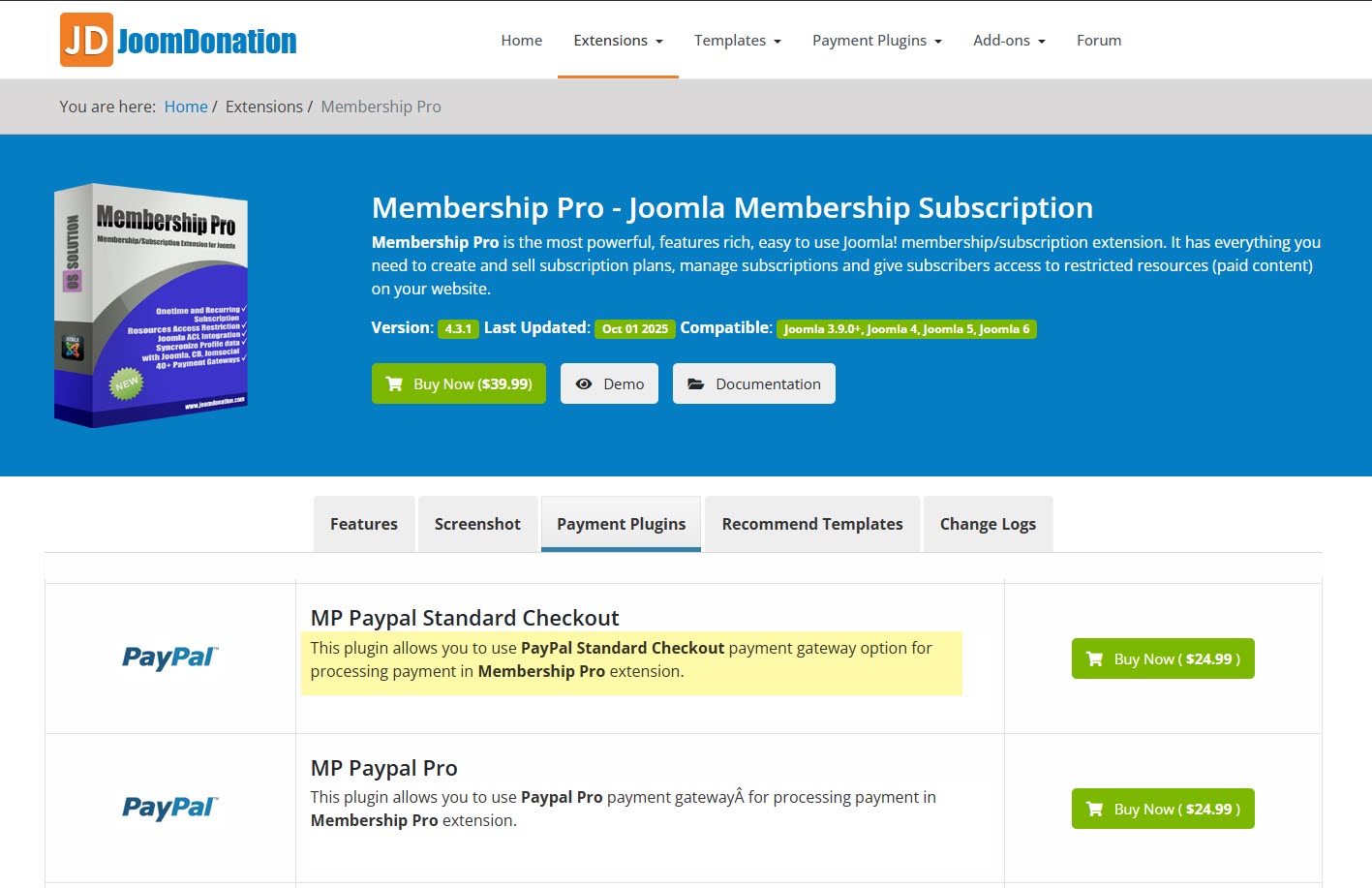 The attached snippets from your website features for MP shows PayPal plugin is included, but then the Payment Plugins tab suggests it needs to be bought for $24.99.