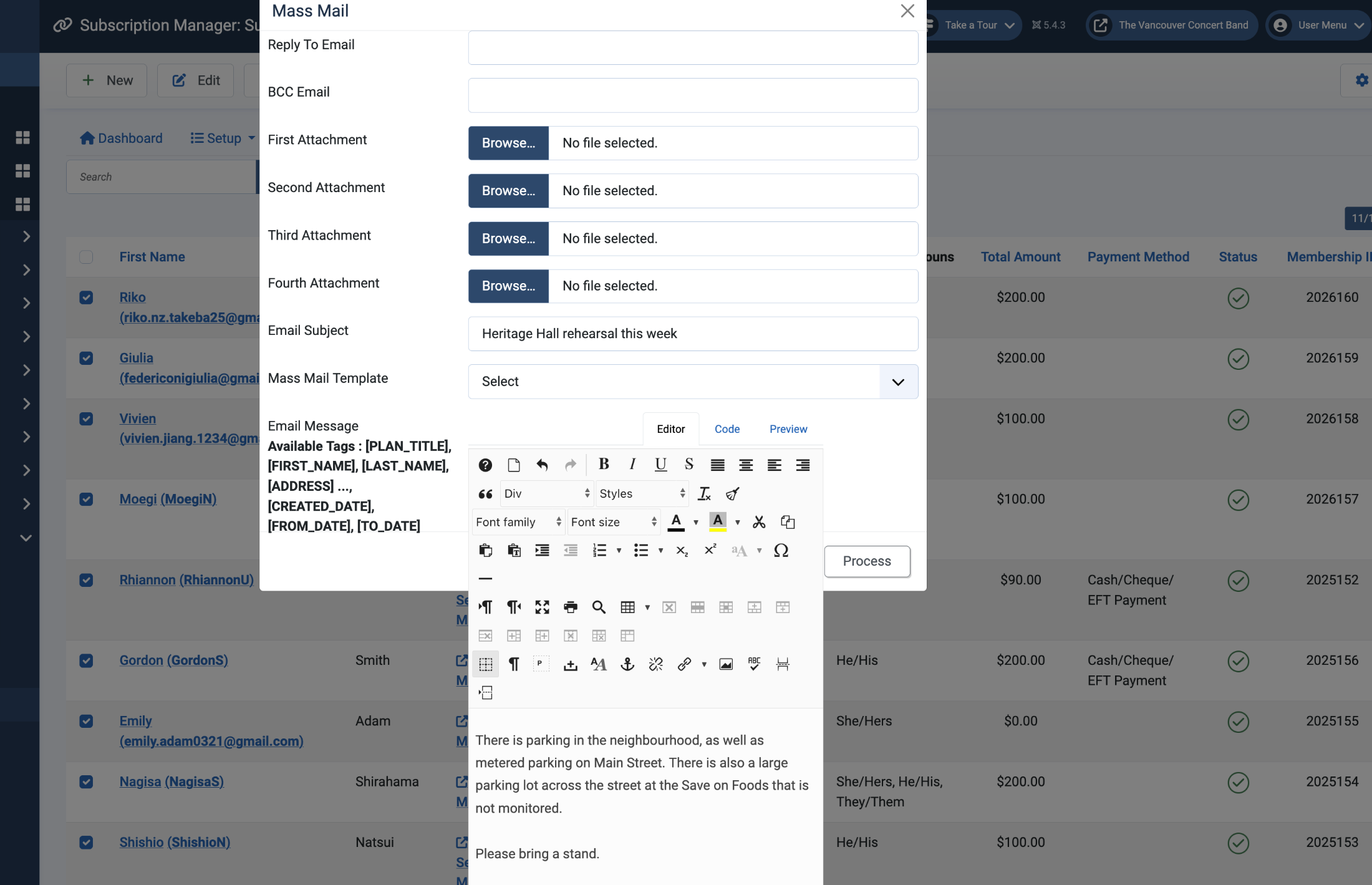I've been having an issue with the Mass Mailer. After I have completed the message in the Mas Mail, the Process button does not function.