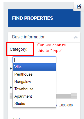 I was wondering if we could change "Category" to "Type" in the search box...?