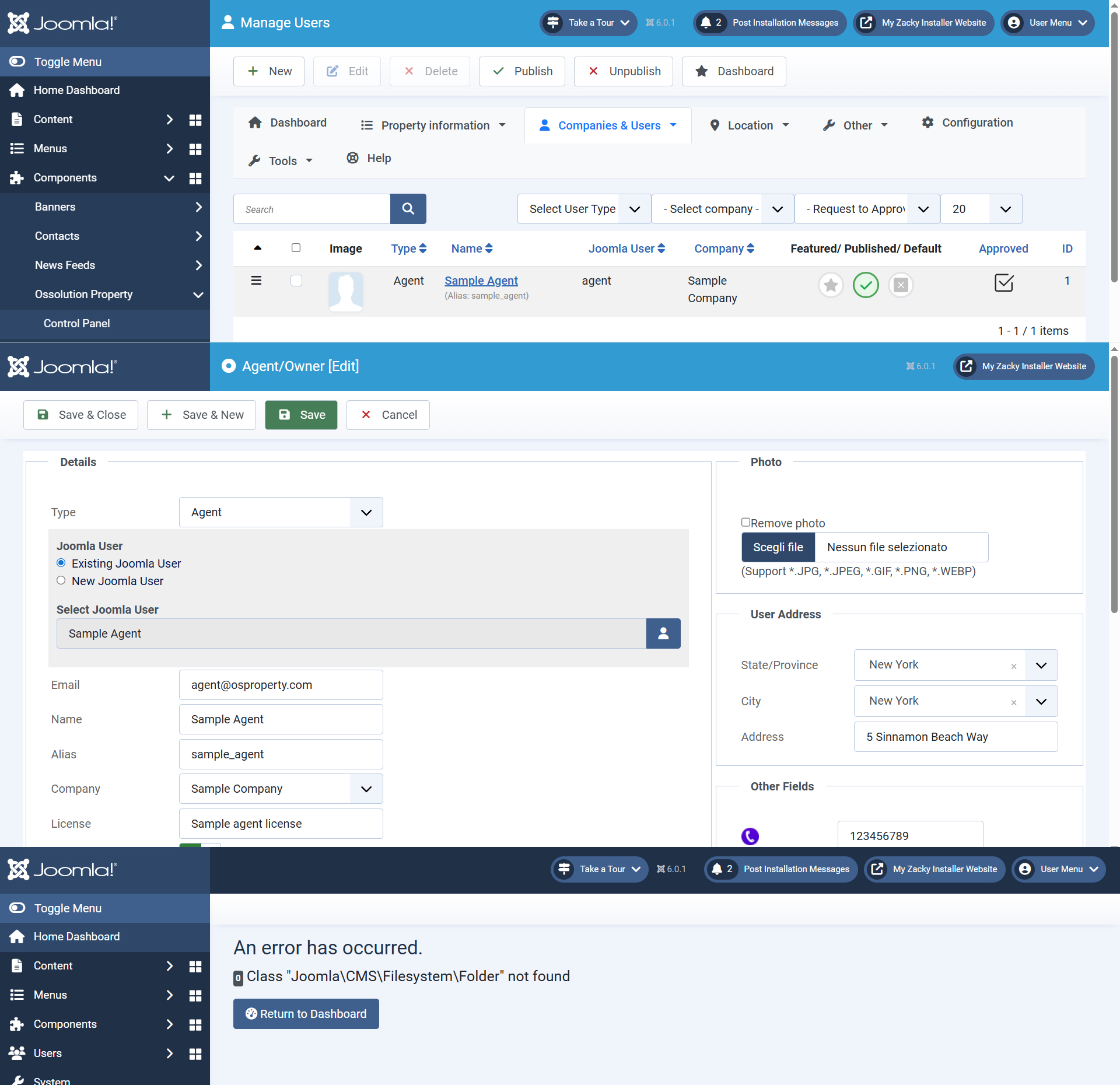 Error message I see when I try to install the wider.zip theme but also when I try to create a new agent or modify an existing one.