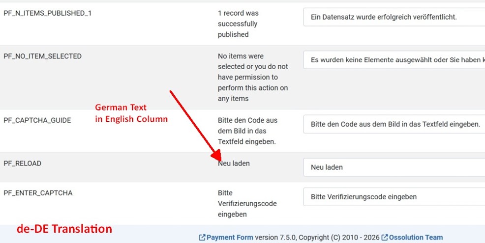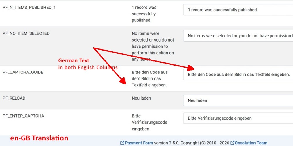 The translation of the payment form is confusing.There are three languages: en-GB, de, de-DEIt seems as if the three languages en-GB, de, and de-DE are mixed with English and German in their respective translations (see attached Pictures)