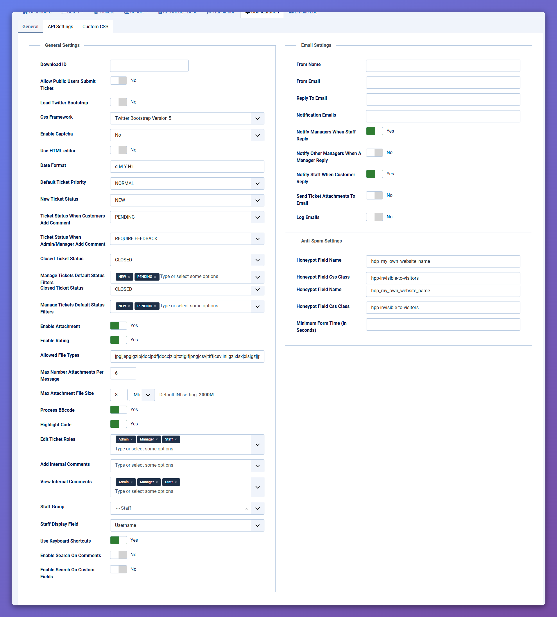 Create unlimited custom fields and assign them to specific categories or make them available across all support tickets.