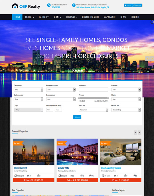 OSP Realty is clean & flexible Real Estate Joomla template based on T4 framework. It suits for OS Property extension and supports both Joomla 4.x & Joomla 5.x, it also supports RTL Language Layouts
